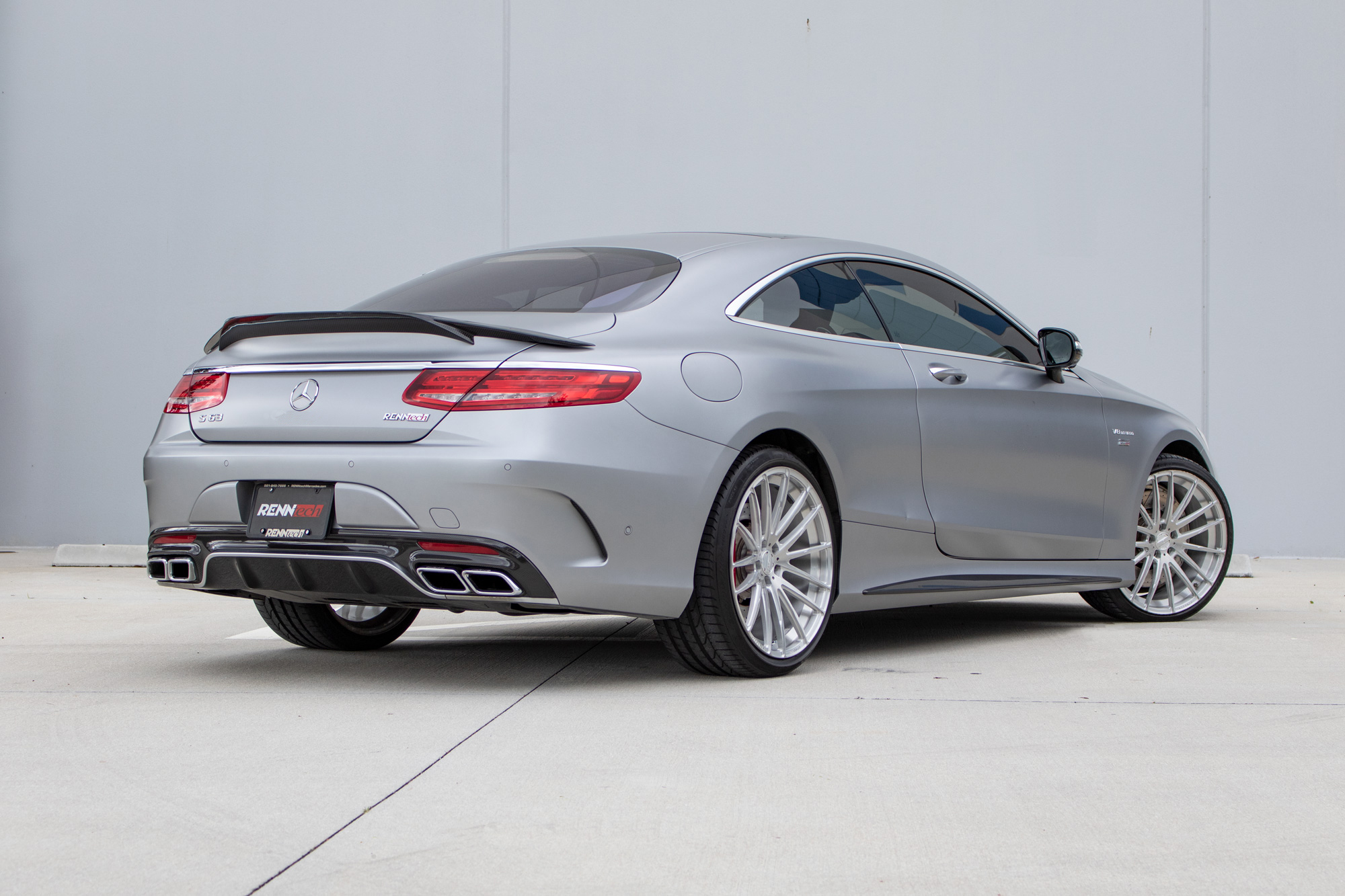 Exterior & Interior Striking Design: Finished in designo Magno Alanite Gray (matte finish), complemented by the AMG Carbon Fiber Package and a RENNtech carbon fiber rear spoiler, this coupe exudes a commanding presence. Luxurious Interior: The cabin features a designo Red and Black leather interior, offering a harmonious blend of sportiness and elegance.