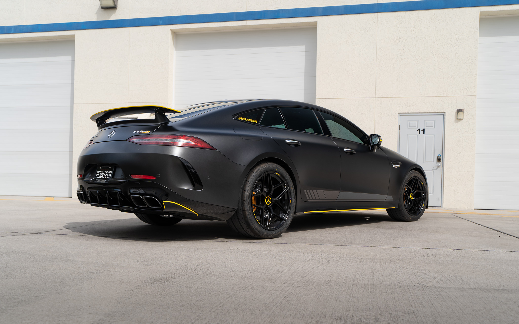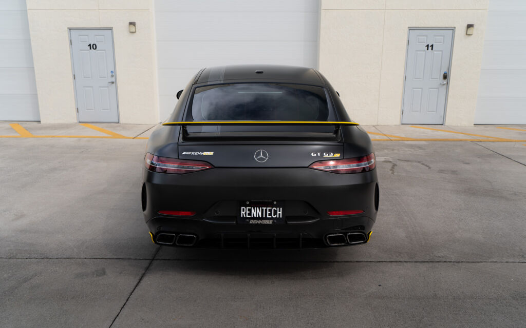 Built for a longtime RENNtech customer, this AMG GT63 Edition One made headlines by setting a new Dyno measured power record of 1196 HP and 927 LB-FT of torque at RENNtech, followed up by a sub 10 second time on the ¼ mile. The AMG GT63 S Edition 1 features additional performance and weight saving upgrades, namely the Forged Magnesium wheels and Nitto 555 tires that helped propel the AMG GT63 Edition One to a world record 9.79 second ¼ mile run, documented in the RENNtech Blog. Additional customer installed upgrades include Forged Magnesium Wheels and Nitto 555 tires ($18,300), XPEL PPF, Ceramic Coating and custom pinstriping ($22,500).